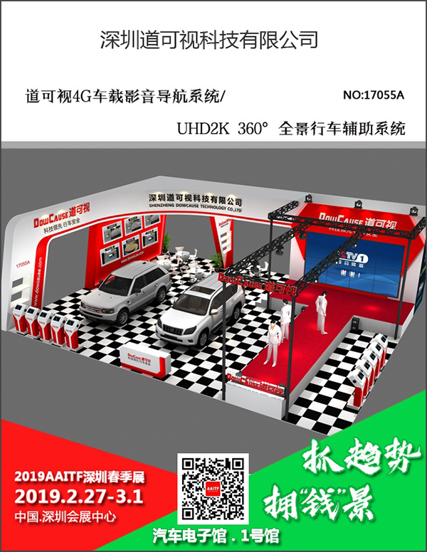 值此辭舊迎新、2019新年開春之際,道可視將攜旗下道可視4G車載影音導航系統(tǒng)、UHD2K 360°全景行車輔助系統(tǒng)等360°全景產品,參展將于2019年2月27日~3月1日,在深圳會展中心舉辦的2019AAITF深圳春季展?。ㄒ韵潞喎Q深圳春季展)