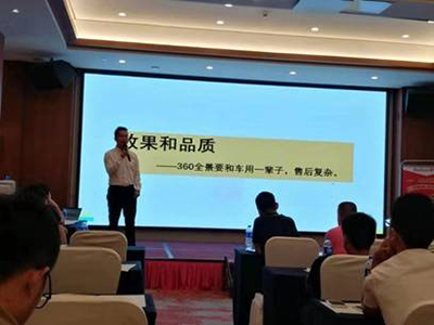 會(huì)議伊始,道可視安徽代理商合肥恒信汽車(chē)影音余總率先上臺(tái)做會(huì)議致辭,對(duì)于現(xiàn)場(chǎng)眾位來(lái)賓的到來(lái)表示了熱烈的歡迎,余總表示伴隨著360°全景市場(chǎng)競(jìng)爭(zhēng)日趨激烈,道可視未來(lái)將繼續(xù)致力于為廣大伙伴打造更有特色的360°全景產(chǎn)品,另外由道可視開(kāi)啟的智慧聯(lián)盟店也期待能與更多的伙伴一起,共同解決360°全景在銷(xiāo)售中遇到的包括安裝以售后服務(wù)等一系列問(wèn)題。