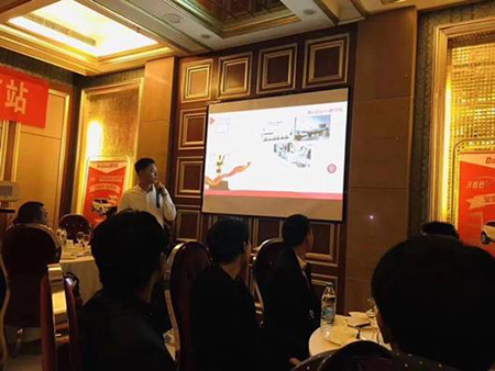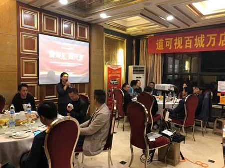 道可視區(qū)域經理雷玉杰隨后上臺便為現(xiàn)場來賓,帶來了更詳細的聯(lián)盟店招商與產品培訓。
